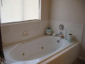 The Master bedroom includes a master bath with jetted tub and large walk-in closet and is located privately on the opposite end of the house from two smaller bedrooms, which share their own Jack and Jill bathroom for children or guests.